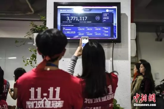 图:11月11日,广州海珠创意产业园内的一家电商企业办公室灯火通明,员工关注交易量。11日零时,一年一度的双十一网购狂欢节正式拉开帷幕。